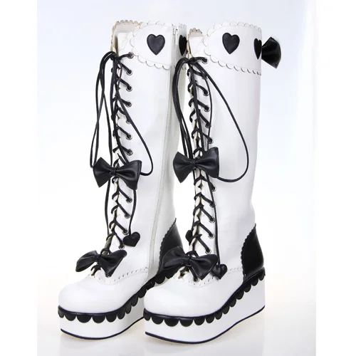 Special Offer Steampunk Lolita Meninas Botas De Cunha Russa Sapatos Femininos Bowknots Inverno Rendas Botas De Couro Branco Botas De Plataforma Princesa Discount 10% Today!