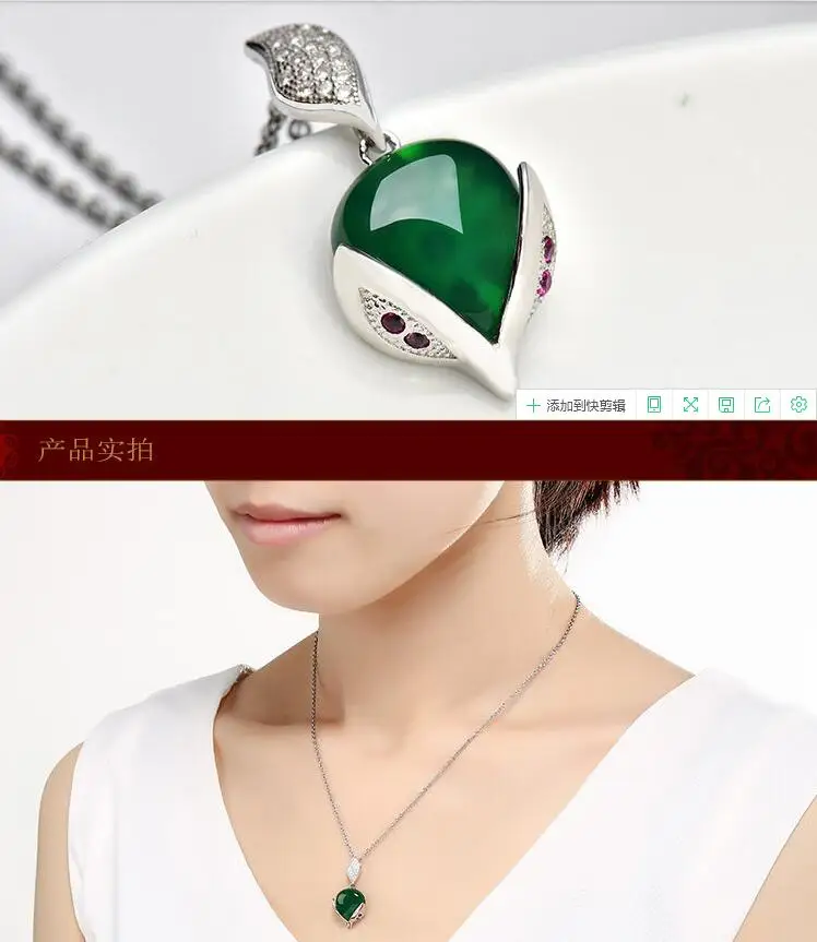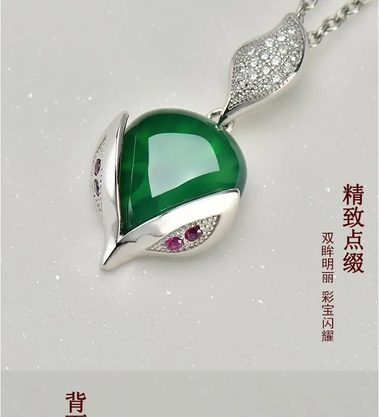 Special Offer Yns 2018 Novo 925 Prata Colar Feminino Anel De Orelha Unha Verde Jade Pith Pingente Corrente Raposa Cauda Anel Conjunto Discount 35% Today!