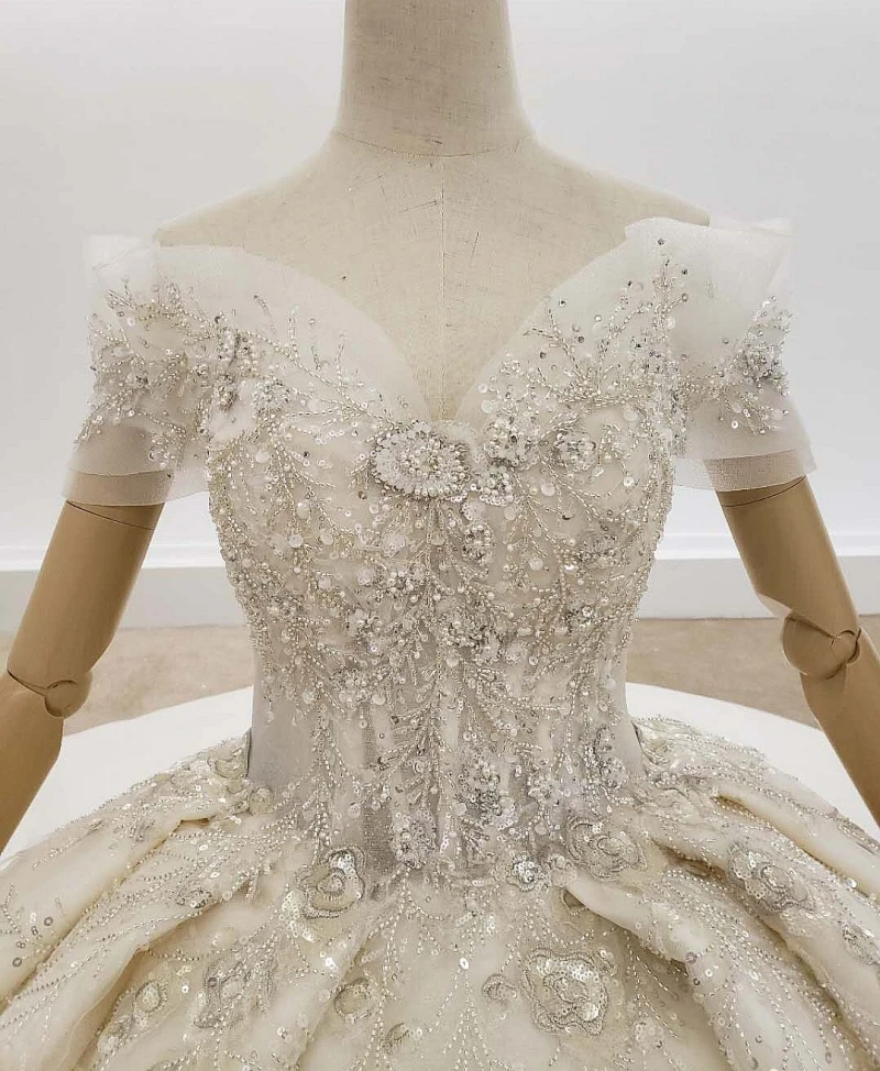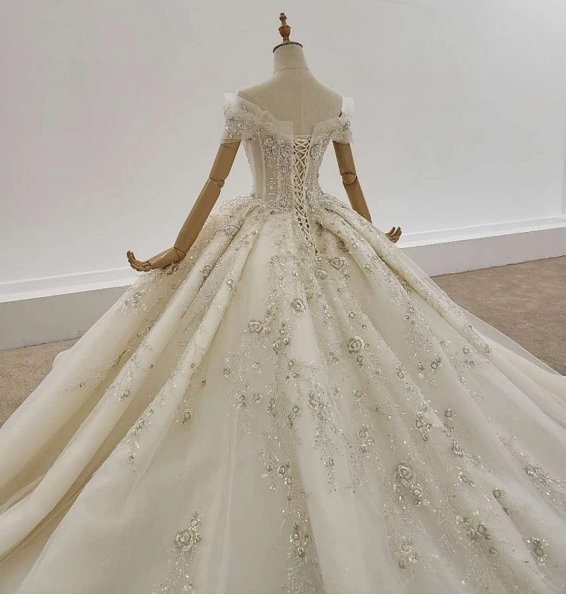 - 628.43 . (0% Off) Melhor Novo Vestido De Baile Africano Vestido De Casamento 2020 Fora Do Ombro Elegante Rendas 3d Flores Trem Vestido De Casamento Nupcial Barato Online Preço.