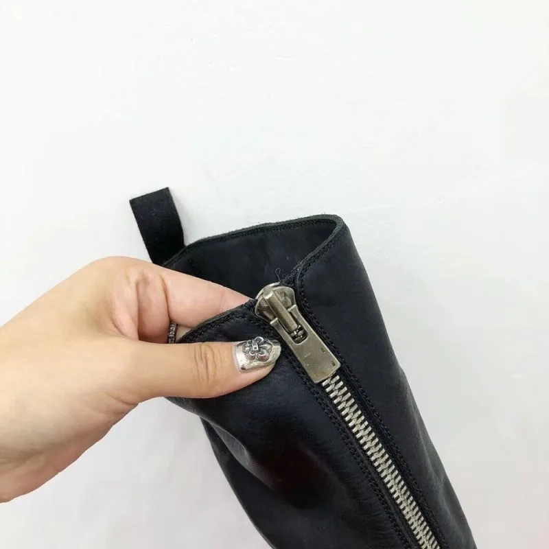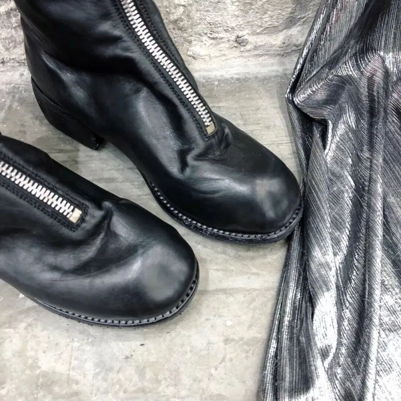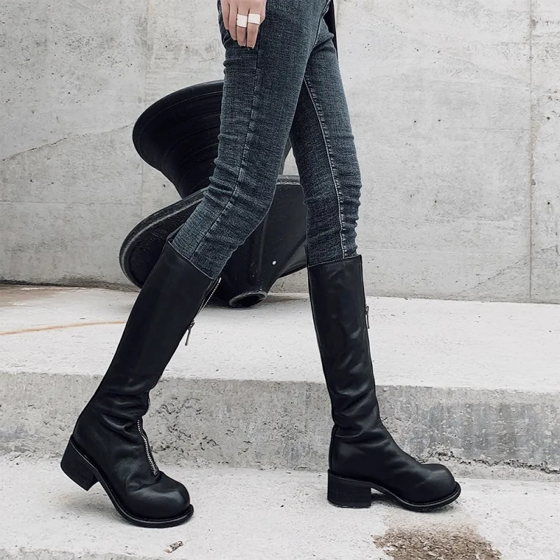 Special Offer Qualidade Superior Couro Genuíno Das Mulheres Botas Cavaleiro Sólido Frente Zip Dedo Do Pé Redondo Moda Botas De Salto Quadrado Botas Casuais Discount 90% Today!