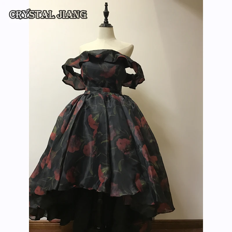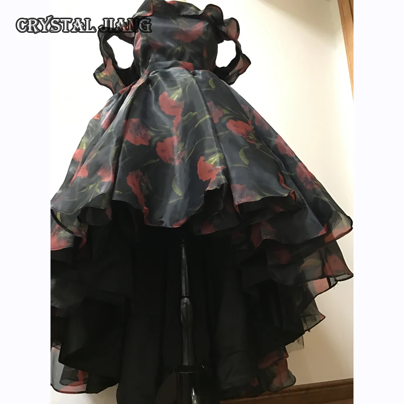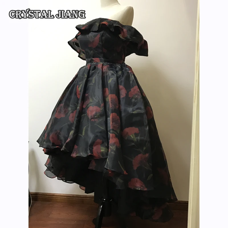 Special Offer Us Tamanho 8 Mãe Da Noiva Vestidos De Baile Organza Preto Com Cravo Vestidos Impressos Alta Baixa Fora Do Ombro Discount 0% Today!