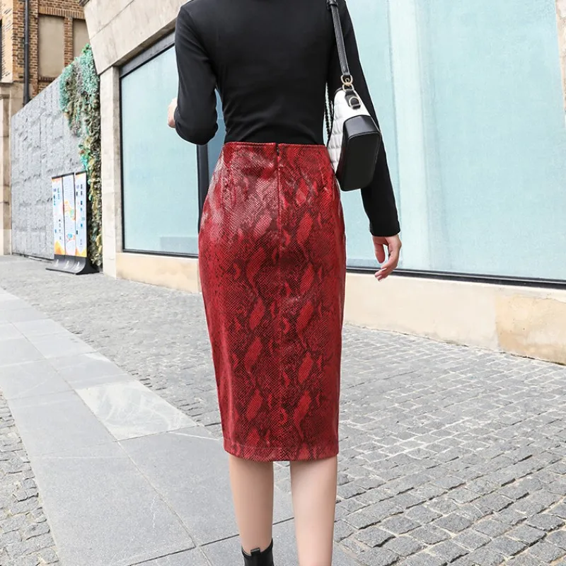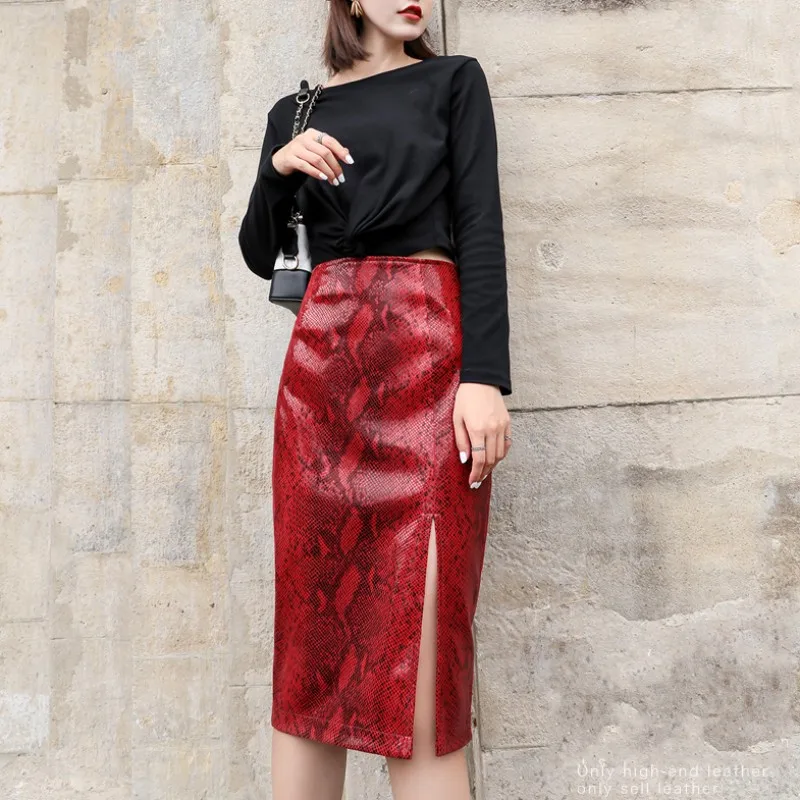 Special Offer 2020 High Street Sexy Split Serpentine Elástico Saia De Couro Genuíno Das Mulheres Cintura Alta Ajuste Fino Na Altura Do Joelho Comprimento Saias Do Envoltório Da Pele Carneiro Discount 42% Today!