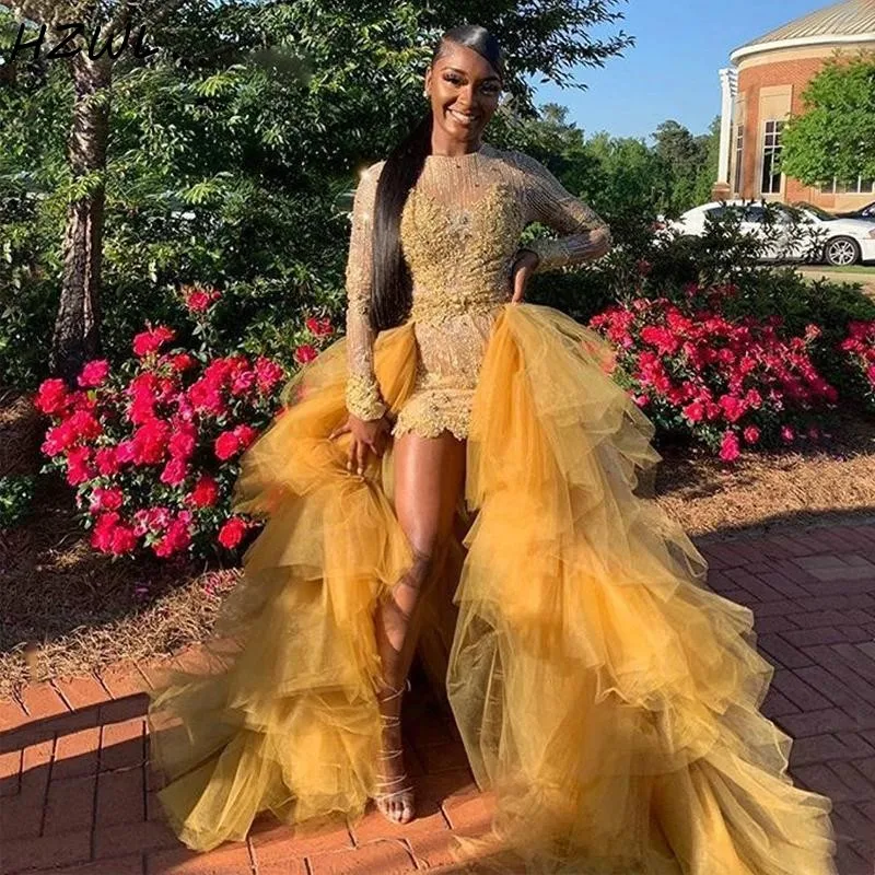 Special Offer Alta Baixa Vestidos De Baile Com Ocerskirts O Pescoço Manga Longa Apliques Frisado Vestidos De Noche Em Camadas Tutu Vestido De Noite Discount 50% Today!