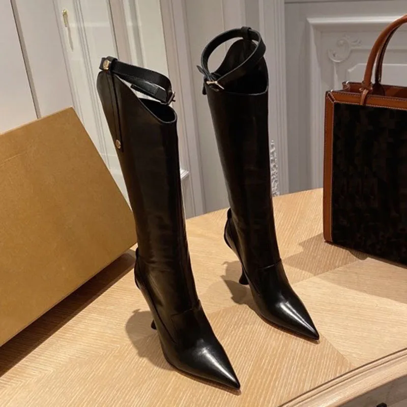 375.84 - 522.00 . (28% Off) Melhor Mulher Joelho Botas Altas De Couro GenuÃno Mulher Botas Longas Apontou Toe Sapatos De Moda 10.5cm Barato Online Preço.