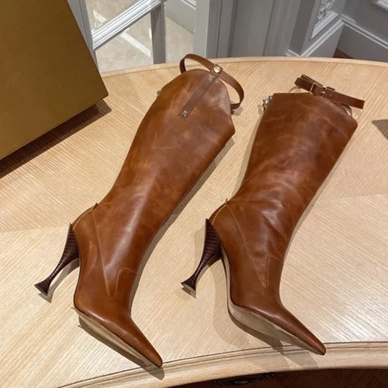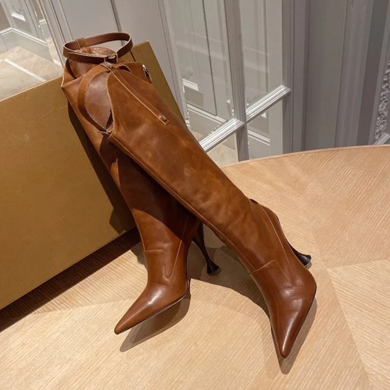 Special Offer Mulher Joelho Botas Altas De Couro GenuÃno Mulher Botas Longas Apontou Toe Sapatos De Moda 10.5cm Discount 28% Today!